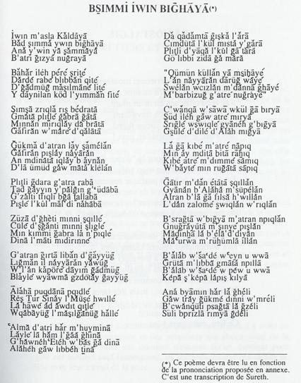 Le poème ci-après résume la vie et l'histoire des habitants d'Ischy. L'idée de soumission et de servitude est fréquente. Cela explique la crainte omniprésente chez ces chrétiens. En effet, ceux qui étaient censés les protéger les maltraitaient et les réduisaient à l'état de servitude. Ils n'étaient jamais propriétaires de ce qui leur appartenait. Ils voudraient quitter cette vie insupportable. Que faire ?